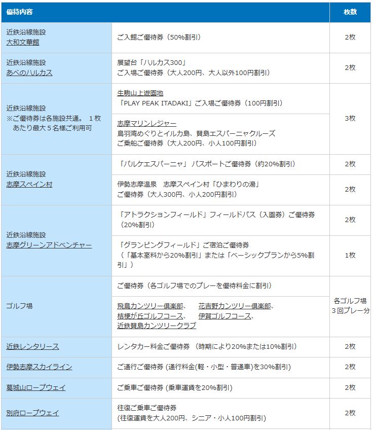志摩スペイン村などの施設割引券が