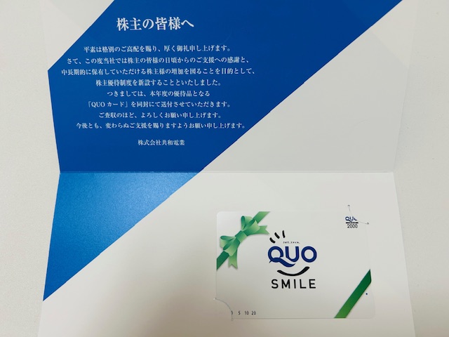 【株主優待】クオカード 共和電業 (6853)