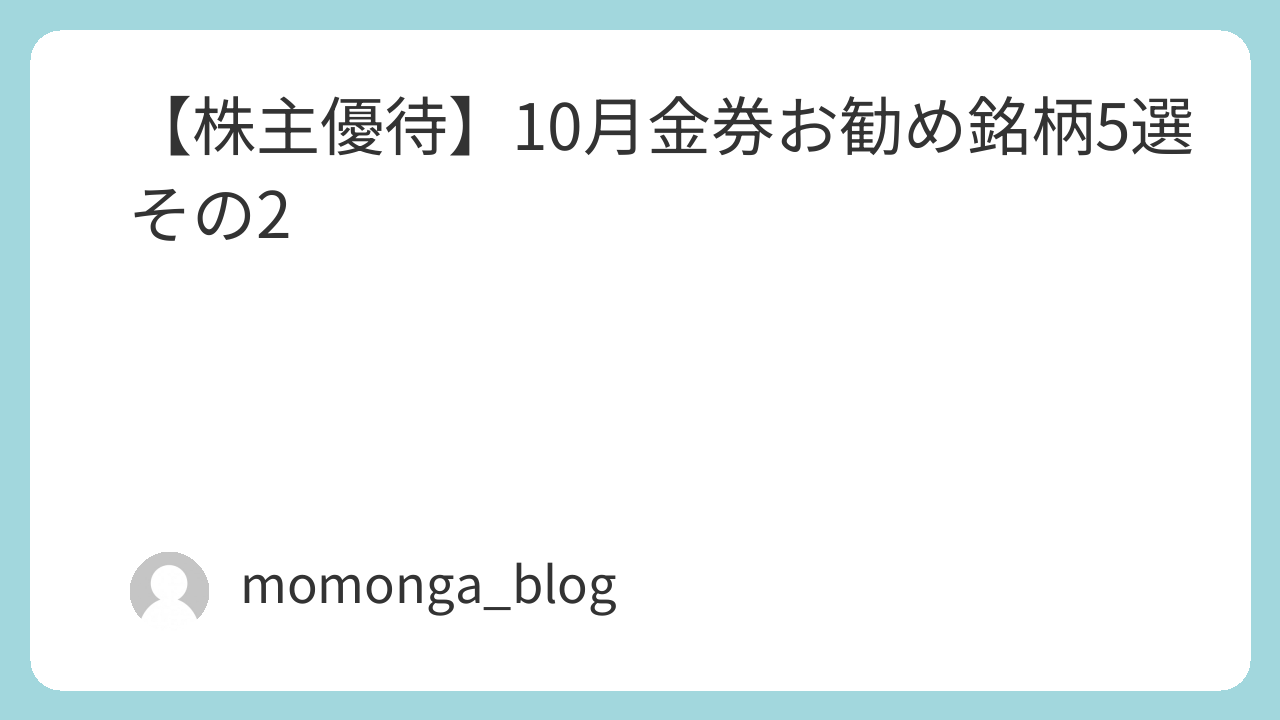 【株主優待】10月金券お勧め銘柄5選 その2