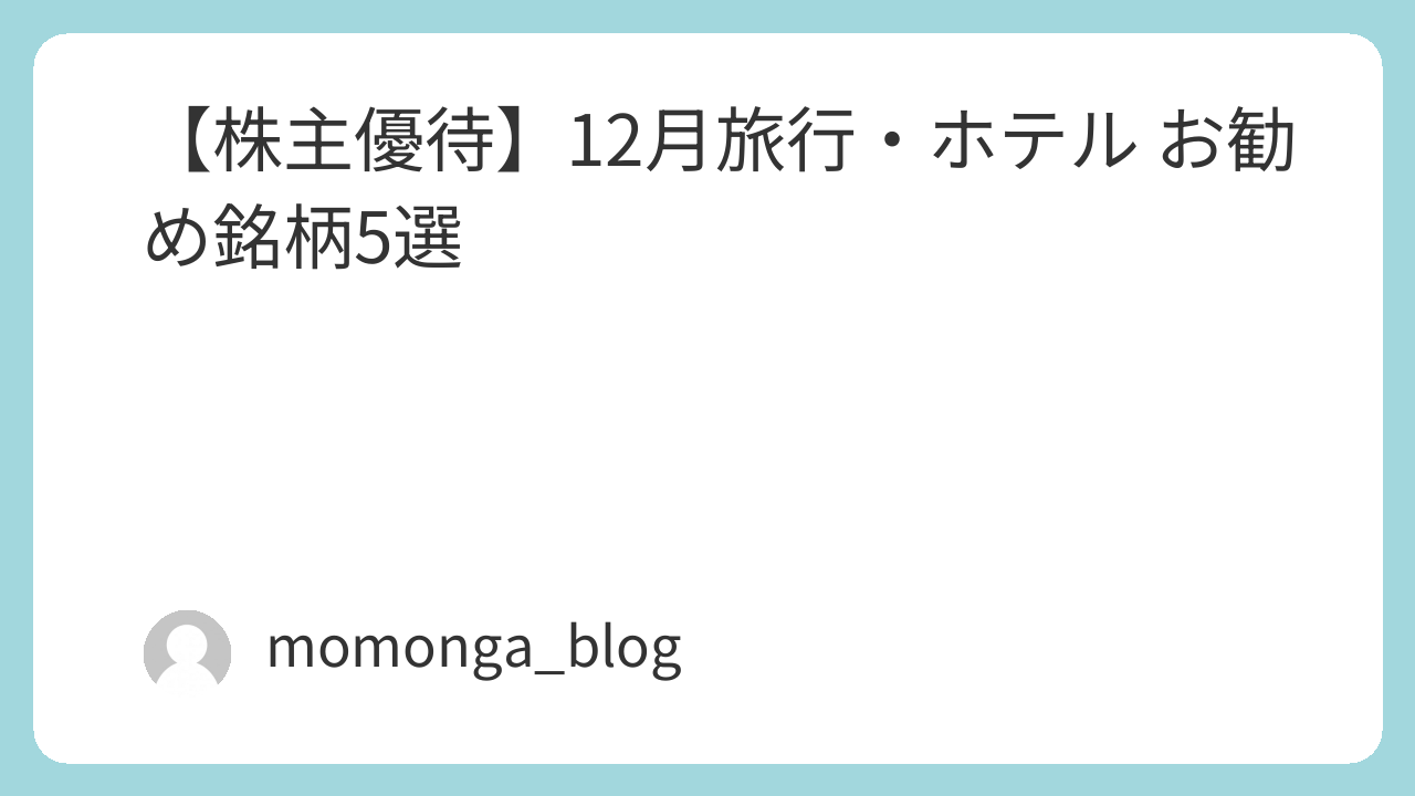 ホテル、娯楽系の優待が貰える、お勧めの銘柄
