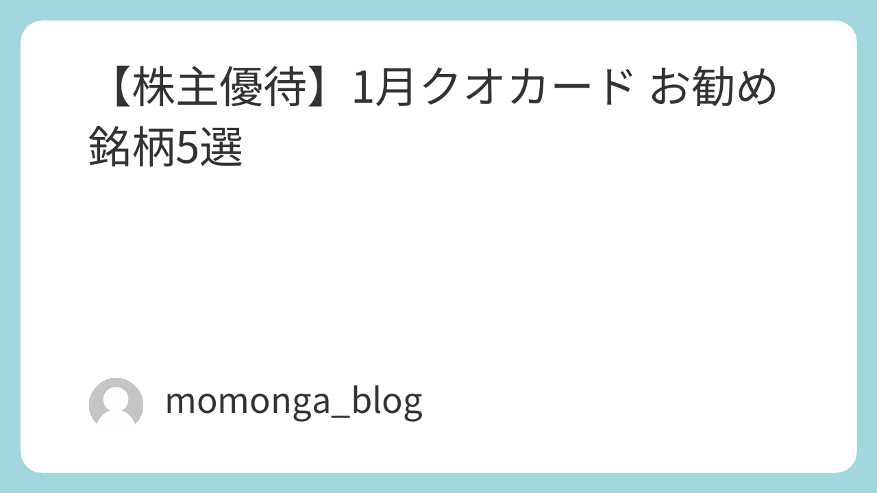 【株主優待】1月クオカード お勧め銘柄5選
