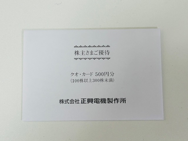 【株主優待】クオカード 正興電機製作所 (6653)