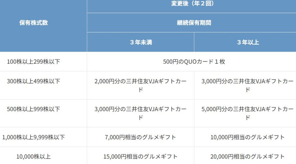 保有株式数や保有期間に応じて、
