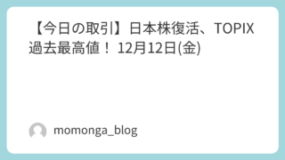 今日の日経 【今日の取引】日本株復活、TOPIX過去最高値! 12月12日(金)