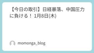 今日の日経 【今日の取引】日経暴落、中国圧力に負ける! 1月8日(木)
