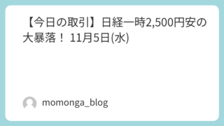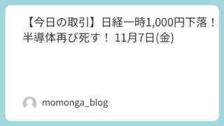 今日の日経 【今日の取引】日経一時1,000円下落!半導体再び死す! 11月7日(金)