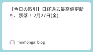 今日の日経 【今日の取引】今日も、日経過去最高値更新! 2月27日(金)